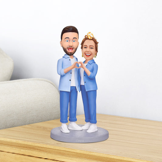 Personalized Bobblehead Couple Hands in Heart Pose, Custom Bobblehead From Photo