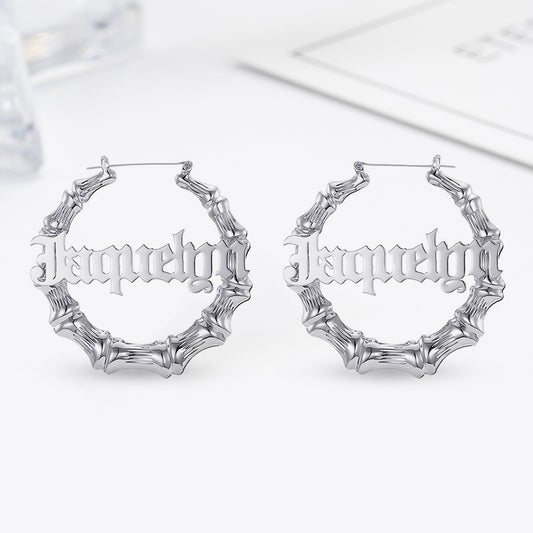 Custom Bamboo Earrings, Custom Hoop Earrings With Name