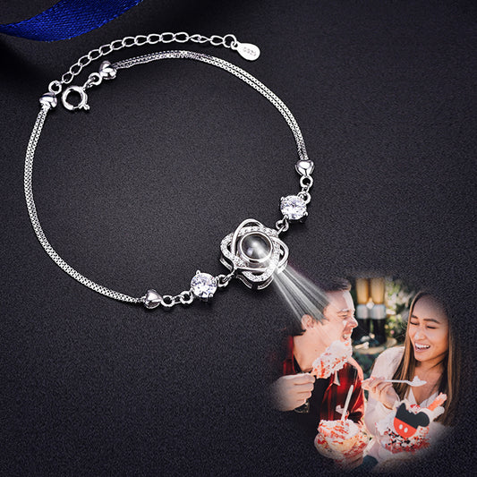 Double Heart Projection Bracelet 925 Sterling Silver Bracelet with a Picture Inside