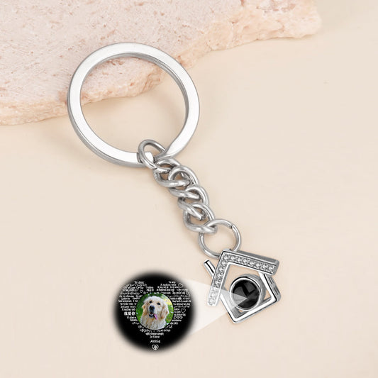 Custom Dog Photo Projection Keychain - House Shaped