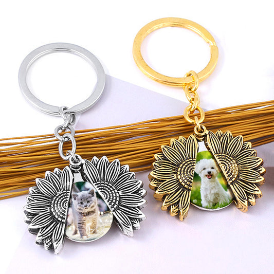Custom Pet Photo Keychain - Sunflower