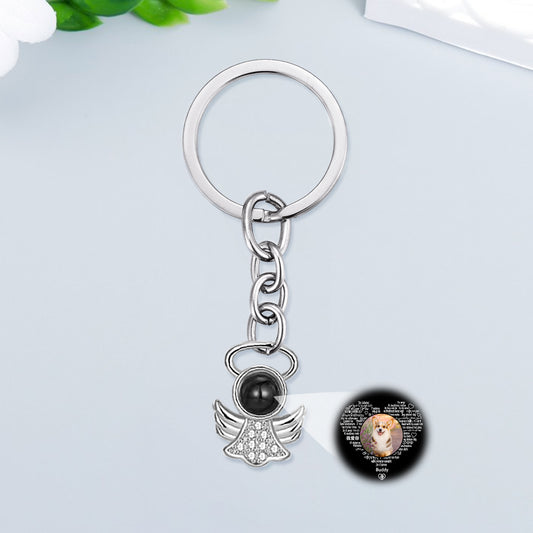 Personalized Pet Photo Projection Keychain - Angel