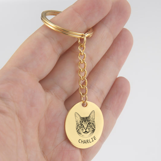 Round Engraved Pet Portrait Keychain Personalized with Photo
