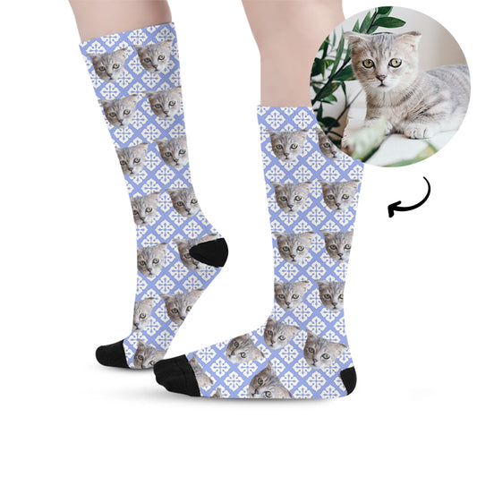 Custom Socks with Pet Photo Personalized Dog Plaid Socks of Your Pet Face