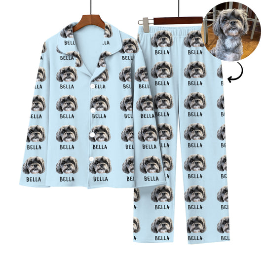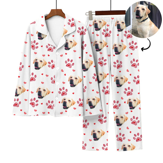 Custom Pajamas With Dog Face And Pet Owner Face Paw Print Custom Face Pajamas For Adult