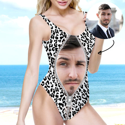 Custom Leopard Zipper Women Funny One Piece Swimsuit