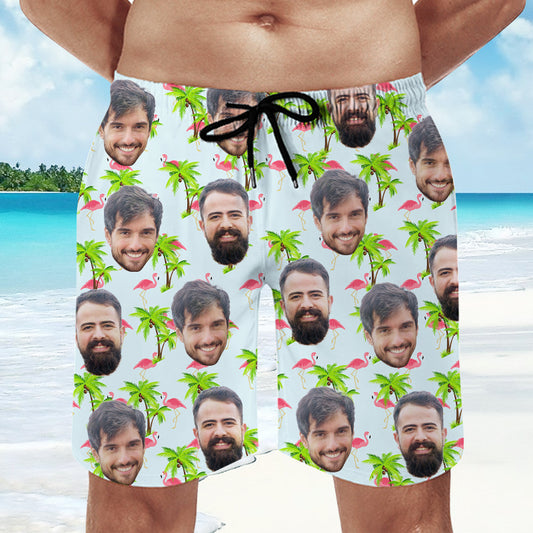 Custom Design Swim Trunks, Flamingo Custom Swim Trunks With Face