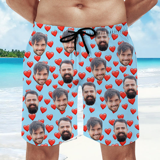 Hearts Custom Swim Shorts, Swim Trunks With Face On Them