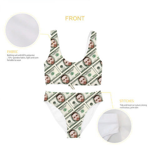 Money Swimsuit With Face Printed On It, Plus Size Two Piece Bathing Suits