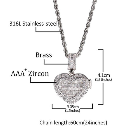 Photo Heart Locket Necklace Mens Womens, Custom Hip Hop Jewelry
