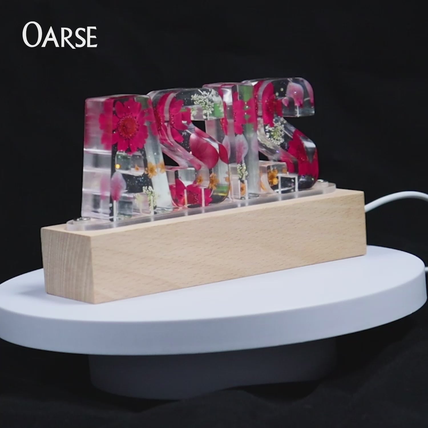 This personalized resin flower lamp with letter is the perfect addition to your home lighting. Our unique resin lamp features real dried flowers that are integrated into the resin letters. Not only is custom resin flower light environmentally friendly, but it also creates a stunning effect that will illuminate any room.