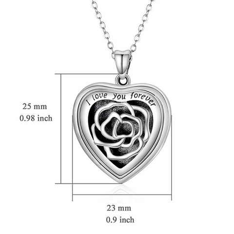 Sterling Silver Heart Locket Necklace With Picture, Locket Necklace Engraved Rose